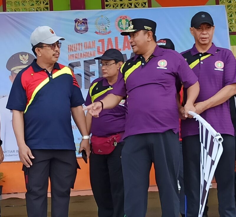 Enrekang |TU7UA| Penjabat Gubernur Sulawesi Selatan Dr Bahtiar Baharuddin, M.Si melepas jalan santai Persatuan Guru Republik Indonesia (PGRI) Kabupaten Enrekang, Sabtu (13/1/2024).