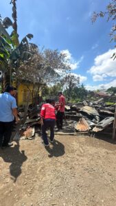 Koordinator FK Tagana Gowa (Muh. Jufri) bersama personil yang turut hadir di lokasi kejadian tersebut kemudian membantu membersihkan puing-puing sisa bangunan yang terbakar milik korban (Arsyad Dg Ngago)
