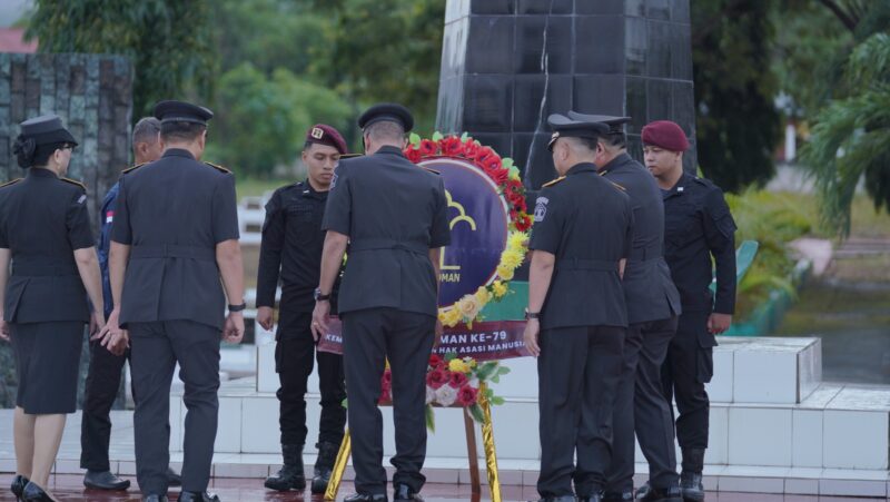 TU7UA, Gorontalo – Dalam rangka memperingati Hari Pengayoman ke-79, Kantor Wilayah Kementerian Hukum dan HAM (Kemenkumham) Gorontalo Kokohkan Perjuangan Pahlawan Menuju Indonesia Emas 2045 dengan menyelenggarakan upacara ziarah dan tabur bunga di Taman Makam Pahlawan Pentadio Kabupaten Gorontalo.
