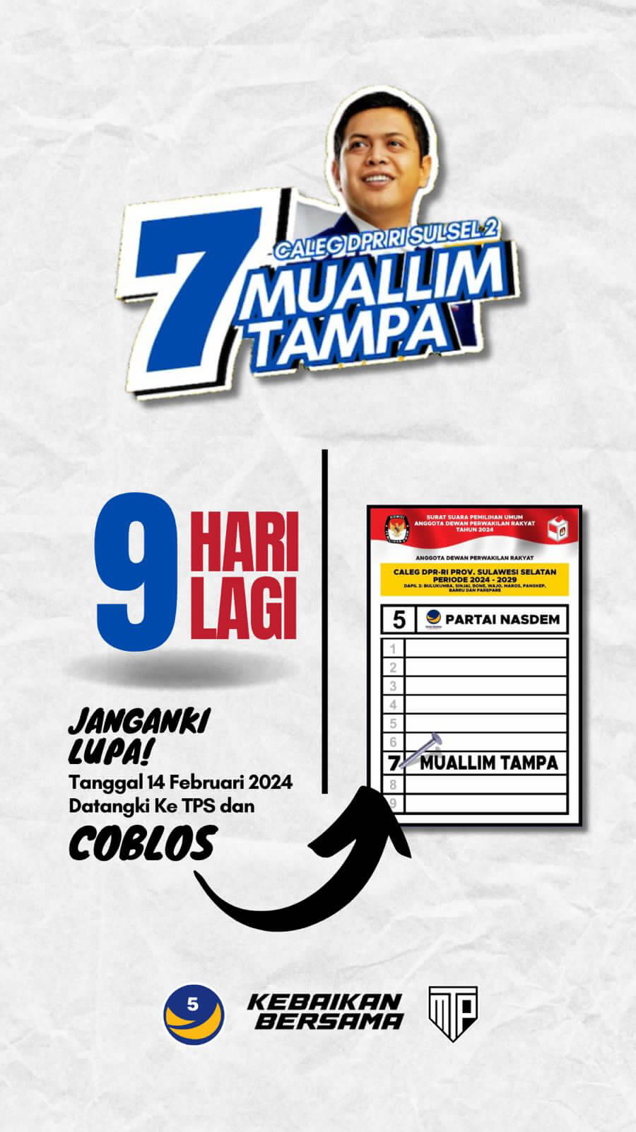 Sosok Muallim Tampa ( MTP) dengan tagline “Kebaikan Bersama” bernomor urut 7 (Tujuh) dari Partai Nasdem, hadir sebagai pendatang baru yang mampu menyita perhatian masyarakat Dapil Sulawesi selatan 2 (dua).