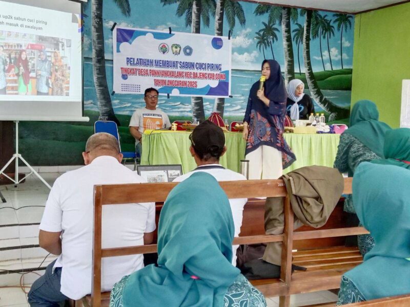 TU7UA | Gowa — Pelatihan pembuatan sabun cuci piring dari bahan alami, khususnya daun pandan, yang diselenggarakan di Desa Panyangkalang, Kecamatan Bajeng, bukan sekadar kegiatan pelatihan biasa.