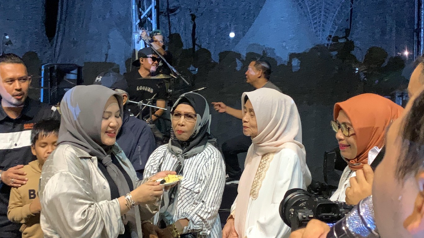 RMS mengucapkan selamat ulang tahun kepada Putri Dakka sembari berinteraksi dengan kurang lebih 40 ribuan pasang mata yang menyaksikan keseruan sederet artis tanah air di lapangan Pancasila Kota Palopo.