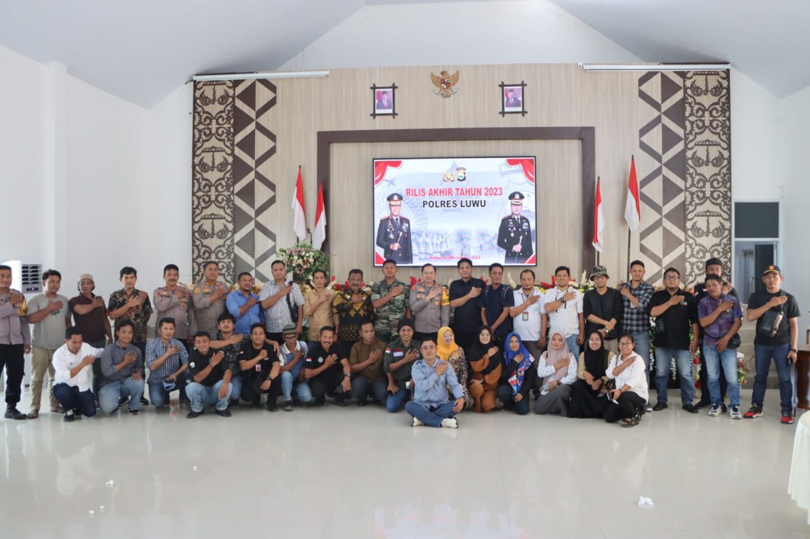 Luwu |TU7UA| Mengevaluasi dan merefleksi kinerja dan capaian sepanjang tahun 2023, Kepolisian Resor Luwu menggelar Rilis Akhir Tahun di Aula Tebbake Tongngenge Polres Luwu, Jum’at 29 Desember 2023.