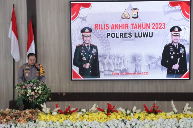 Kapolres Luwu, AKBP ARISANDI,SH.SIK,MSi memaparkan capaian kinerja baik Polres maupun Polsek jajarannya dalam tahun 2023. Diantaranya, Operasi Keselamatan, Operasi Antik Lipu, Operasi Bina Kusuma, Operasi Ketupat, Operasi Sikat Lipu, Operasi Patuh Pallawa, Operasi Pekat, Operasi Zebra dan Operasi Mantap Brata serta Operasi Lilin yang masih berlangsung hingga saat ini.