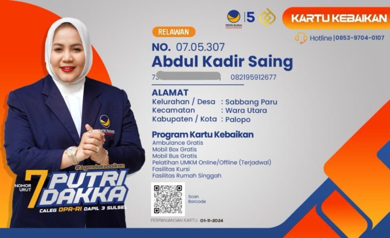 Dalam ulasannya dijelaskan bahwa Kartu dengan nomor relawan menggunakan barcode yang tidak bisa digandakan. Dari sinilah Putri ke depan akan menyalurkan hobi berupa agenda kebaikan Putri yang masih tertahankan hingga saat ini karena keadaan dimana Putri terdaftar sebagai caleg.